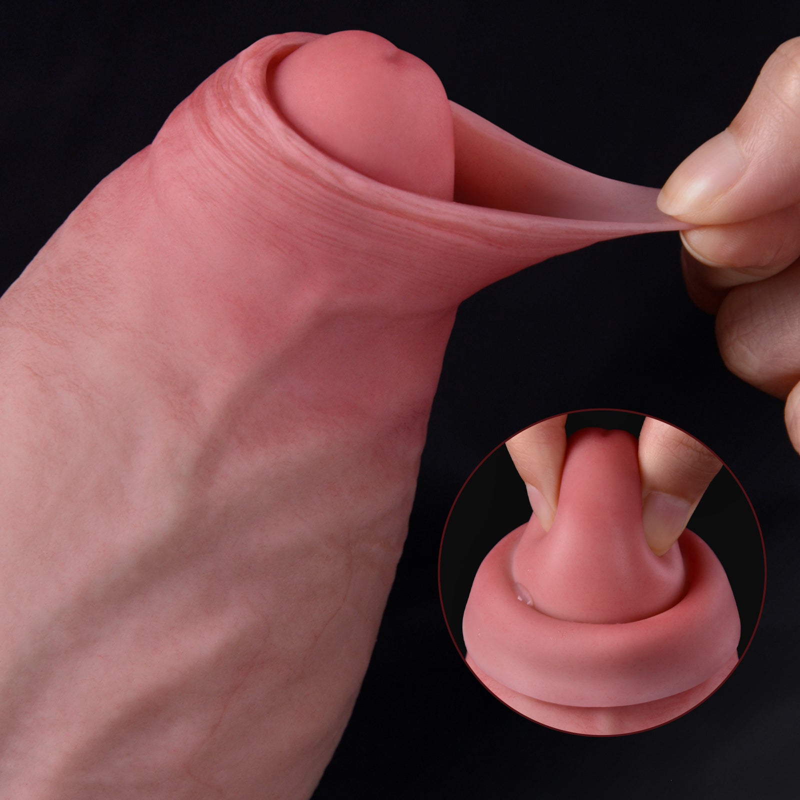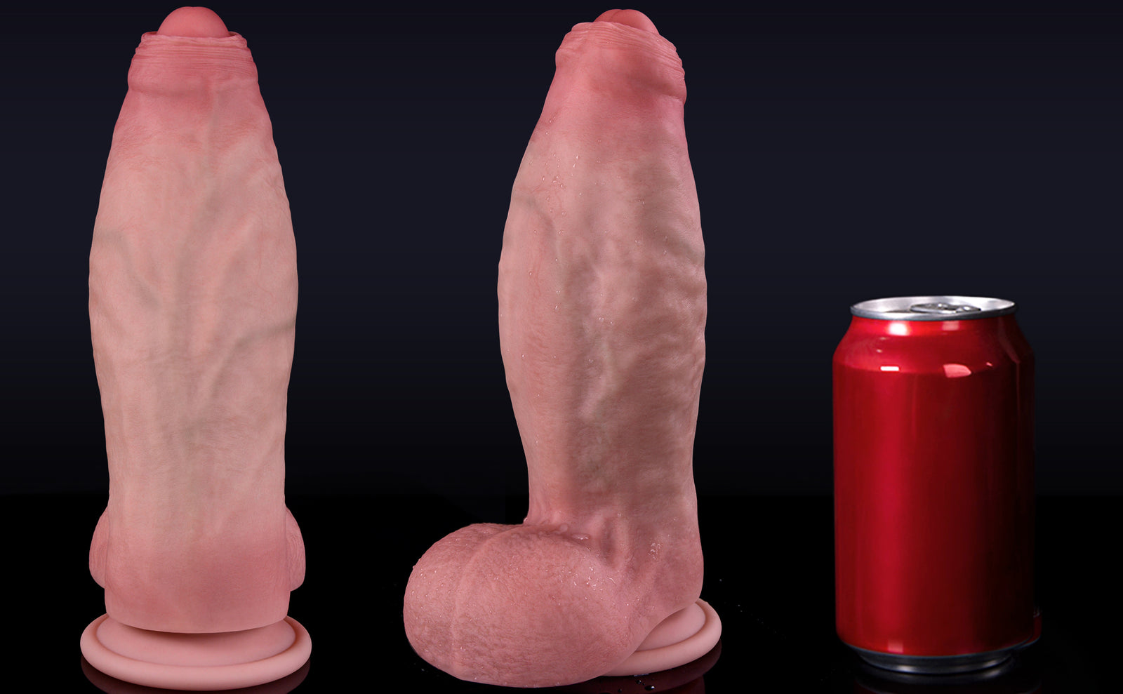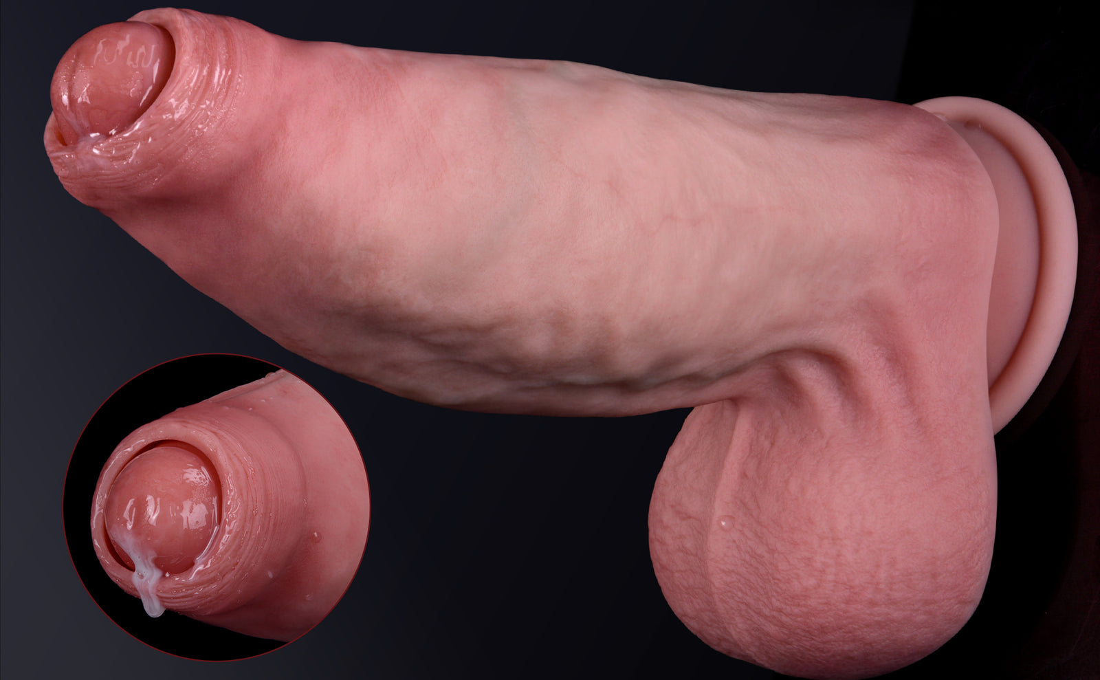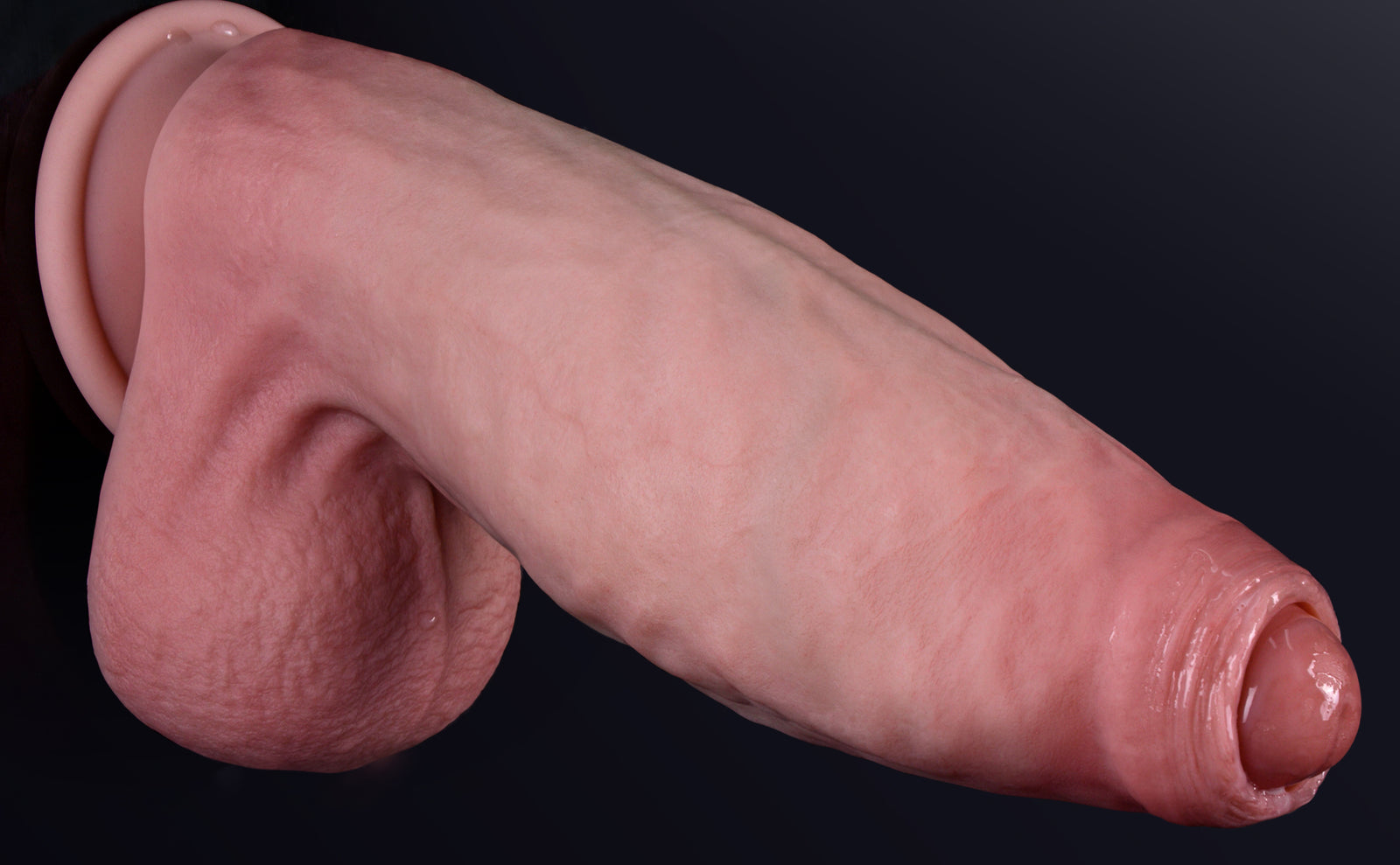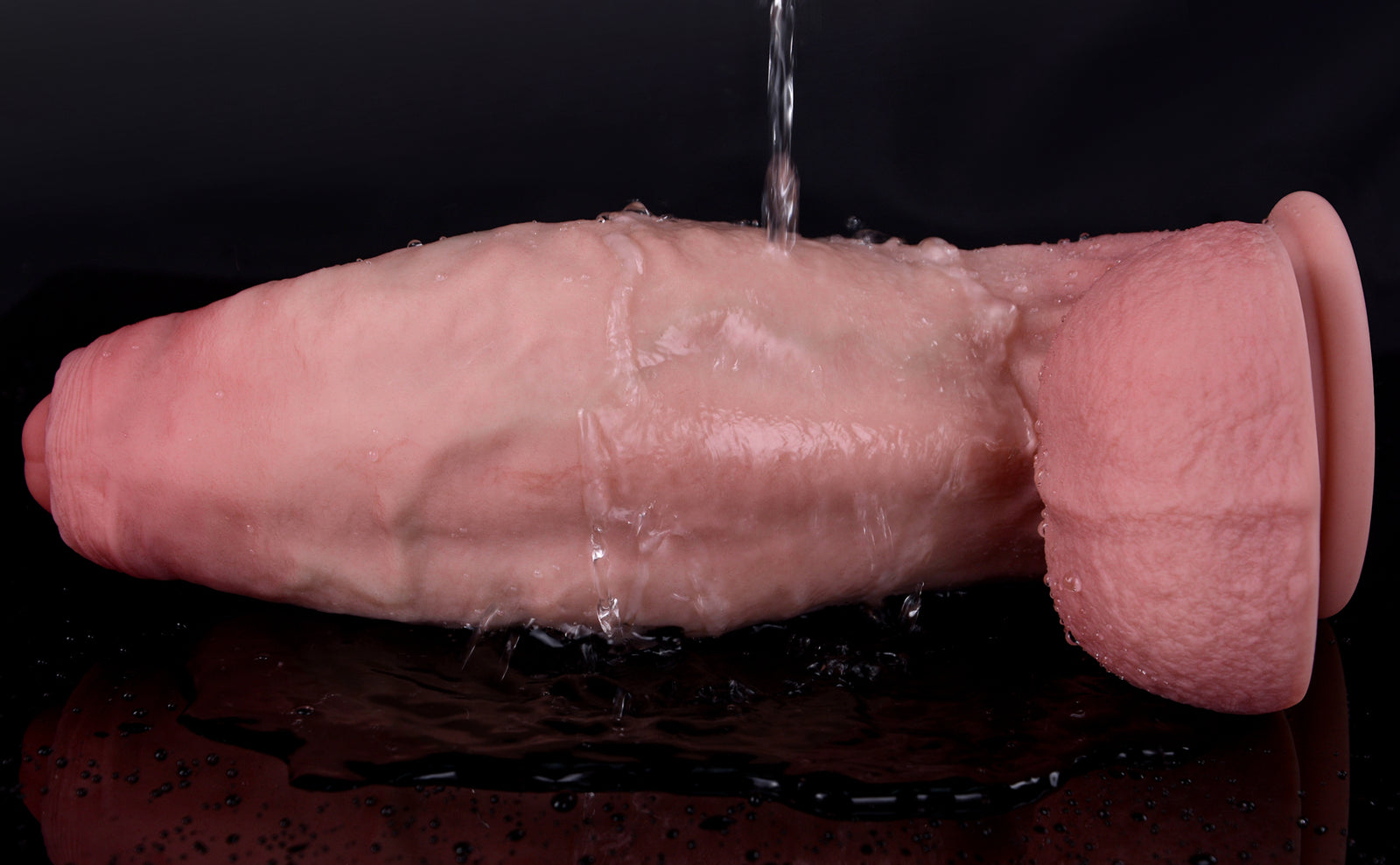 The silicone feels incredibly lifelike — soft and squishy on the outside with a firm core that makes every stroke feel real. The texture, the smoothness, even the tip and balls are just perfect — soft where it should be, firm where it counts. And wow, the girth on this thing is amazing — thick and satisfying, giving that full, intense feeling every time. No chemical smell, just pure quality.